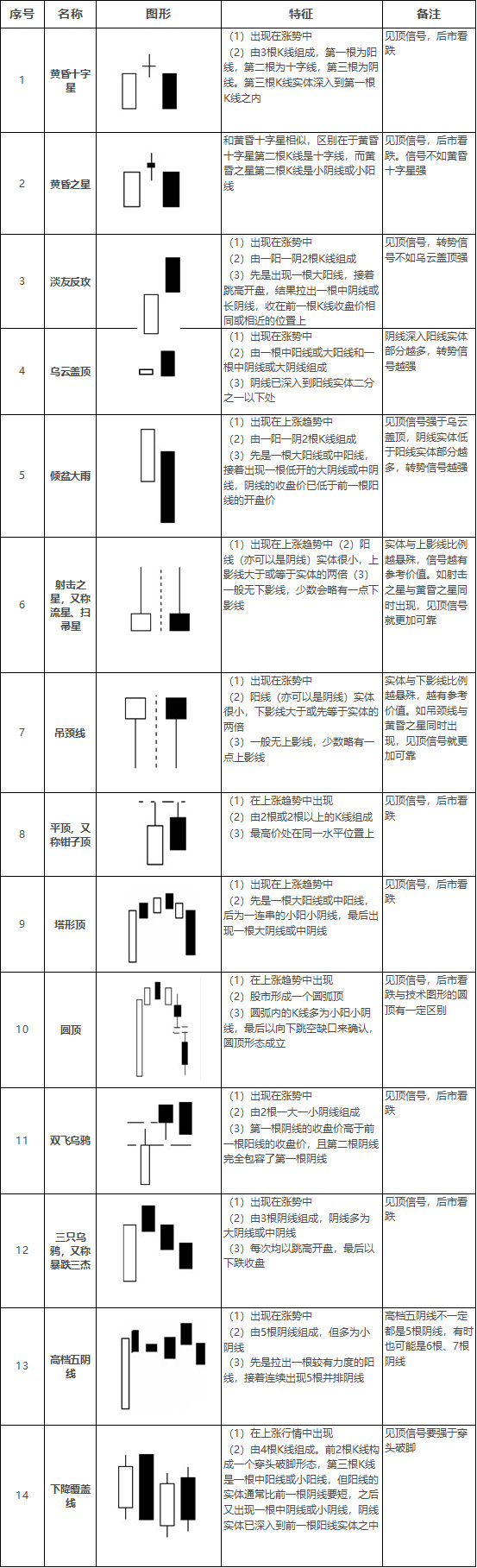 以下是一些经典的K线组合形态,总结的十分全面,大家在交易的时候遇到一些疑难形态,可以对照下方图表,进行分析,摸索交易的方法!