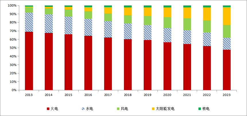 而到2023年底,我国非化石能源发电装机容量为15.7亿千瓦,占总装机容量比重53.9%,已超过火电装机容量,成为中国电力的主要动能。
