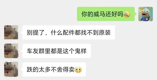 威马车主A先生表示如今只能找车友互助群抱团取暖,里面可以买配件,自己能安装更方便,安装不了可以去路边任一维修厂更换,只需付一些工时费。