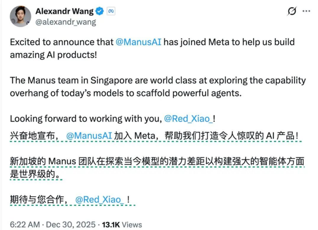 这本该是件大好事,可在中美AI博弈的地缘政治环境下,这笔投资很快遭到美国财政部审查。Meta的收购案后续也被中国商务部所关注。