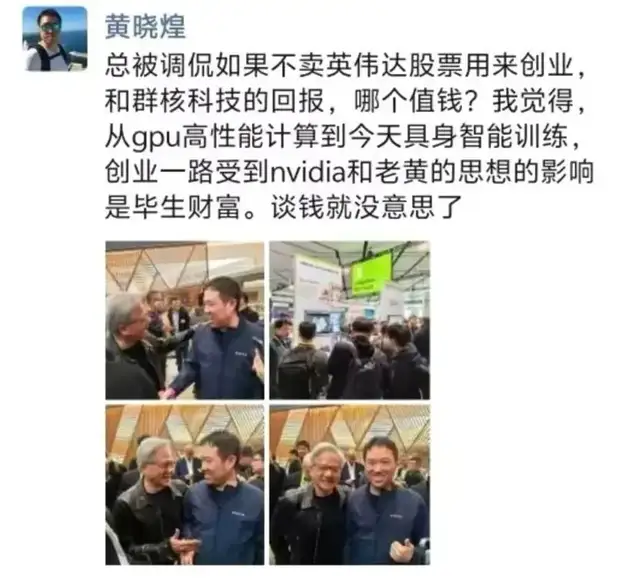 黄晓煌曾坦言,创业路上,英伟达与黄仁勋带来的思想影响,是伴随一生的财富。