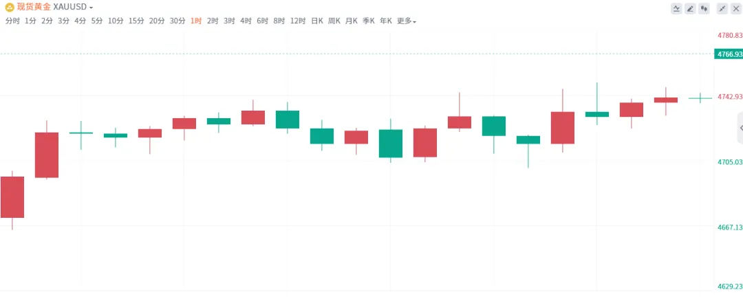 另外FXStreet分析师Christian Borjon Valencia指出,从中期角度来看,金价走势偏向上行;金价已经从4639美元/盎司的日内低点反弹,该低点位于100日和20日简单移动平均线(SMA)的汇合区域(4658-4668美元/盎司)下方。短期而言,相对强弱指数(RSI)已转为看跌信号;但若该指标未能跌破44.76这一前低点,金价或将有望进一步走高。Valencia表示,若现货黄金价格能突破4750美元/盎司这一关键心理阻力位,将为其进一步上行打开空间,下一个阻力位将指向4800美元/盎司。若能突破该水平,金价有望向下一个值得关注的区域发起冲击——即4月8日创下的4857美元/盎司高点,紧随其后的阻力位则是位于4897美元/盎司的50日SMA。Valencia补充道,反之,若金价回落至4700美元/盎司下方,市场焦点将转向对20日和100日SMA汇合区域(约4668-4658美元/盎司)的考验;若该区域失守,下一个下行目标将指向4600美元/盎司关口。