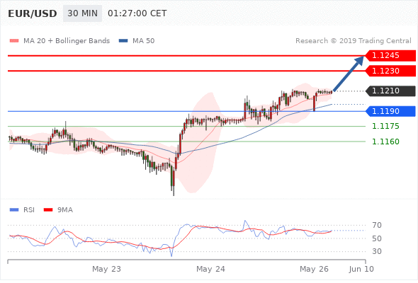 | 在 1.1190 之上,看涨,目标价位为 1.1230 ,然后为 1.1245 。 |