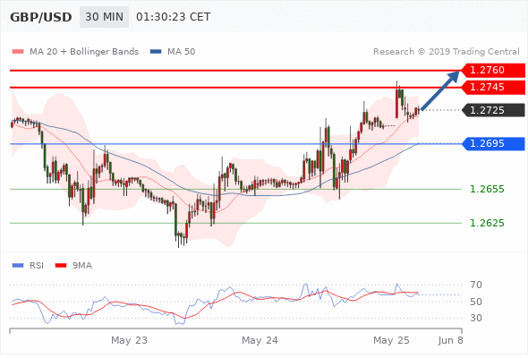 | 在 1.2695 之上,看涨,目标价位为 1.2745 ,然后为 1.2760 。 |