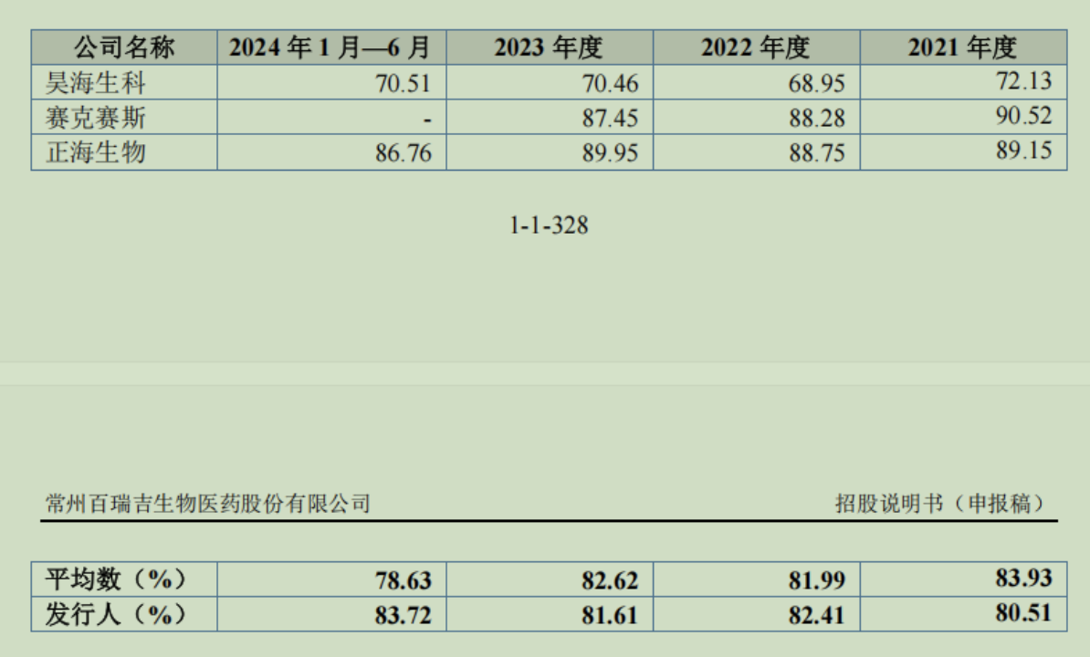 尽管百瑞吉的毛利率最初低于行业可比公司的平均值,但随后却超过了这些公司。百瑞吉认为,其毛利率的变化并不表明与可比公司之间存在重大差异。至于昊海生科毛利率较低的问题,这主要是由于其产品线与百瑞吉不同,并且昊海生科的部分产品参与了集中采购,因此采取了牺牲价格以增加销量的策略。