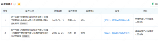 另外,厦门希君美、其关联公司厦门希君美生物科技有限公司以及梅丽青,均被杨某某、翁某某以合同纠纷为由提起诉讼。