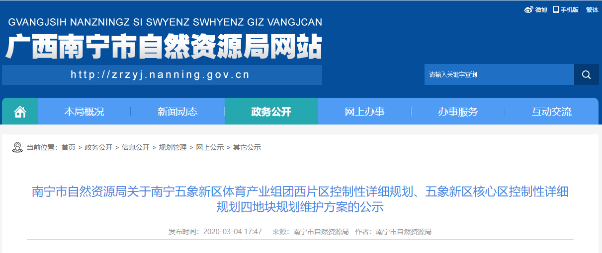 乐居买房讯 3月4日,南宁市自然资源局挂出一条关于五象新区新规划——《南宁市自然资源局关于南宁五象新区体育产业组团西片区控制性详细规划、五象新区核心区控制性详细规划四地块规划维护方案的公示》。规划显示,本次将一宗体育场馆用地一分为二体育用地、居住用地,将A-2-1地块由商务用地调整为居住用地,另外两宗商业用地调整为中小学用地,A-2-1地块为30班小学、A-4-1地块为24班中学。