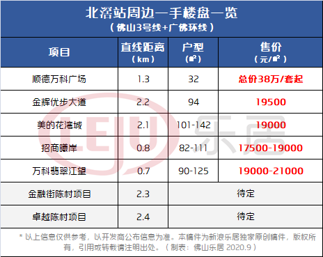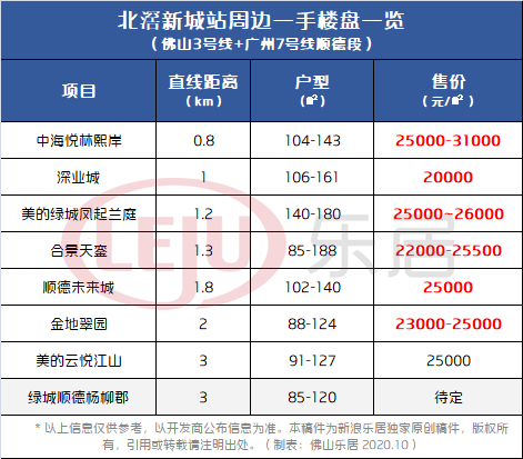 据统计,目前北滘新城站周边3公里范围内(百度测距直线距离)在售/待售楼盘约8个,洋房均价约2-3.1万/㎡。
