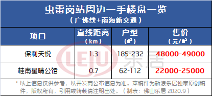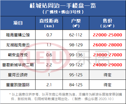 据统计,目前桂城站周边3公里范围内(百度测距直线距离)在售/待售楼盘约6个,洋房均价约2.2-2.9万/㎡不等。