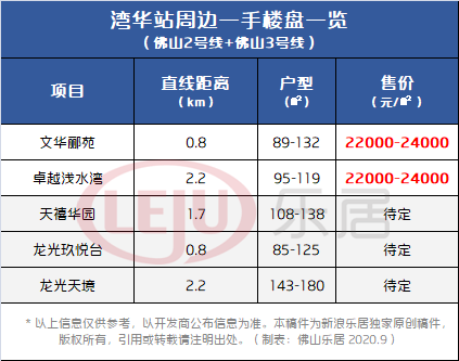 据统计,目前湾华站周边3公里范围内(百度测距直线距离)在售/待售楼盘仅有5个,在售住宅均价在2.2-2.4万/㎡不等。