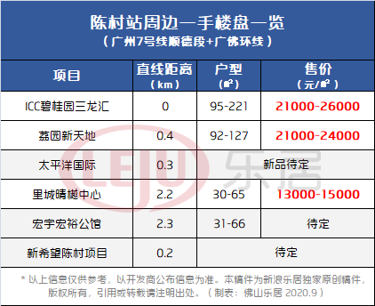 据统计,目前陈村站周边3公里范围内(百度测距直线距离)在售/待售楼盘约有6个,在售住宅均价约2.1-2.6万/㎡。