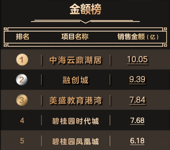 其二:一季度商品住宅项目销售金额榜单,中海云鼎湖居、融创城、美盛教育港湾位列前三,可以看出郑州主城区依然是购房主力,高端住宅市场不减。