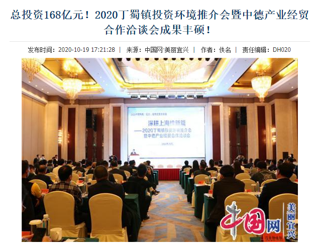 信息和图片来源:中国网《总投资168亿元!2020丁蜀镇投资环境推介会暨中德产业经贸合作洽谈会成果丰硕!》文章