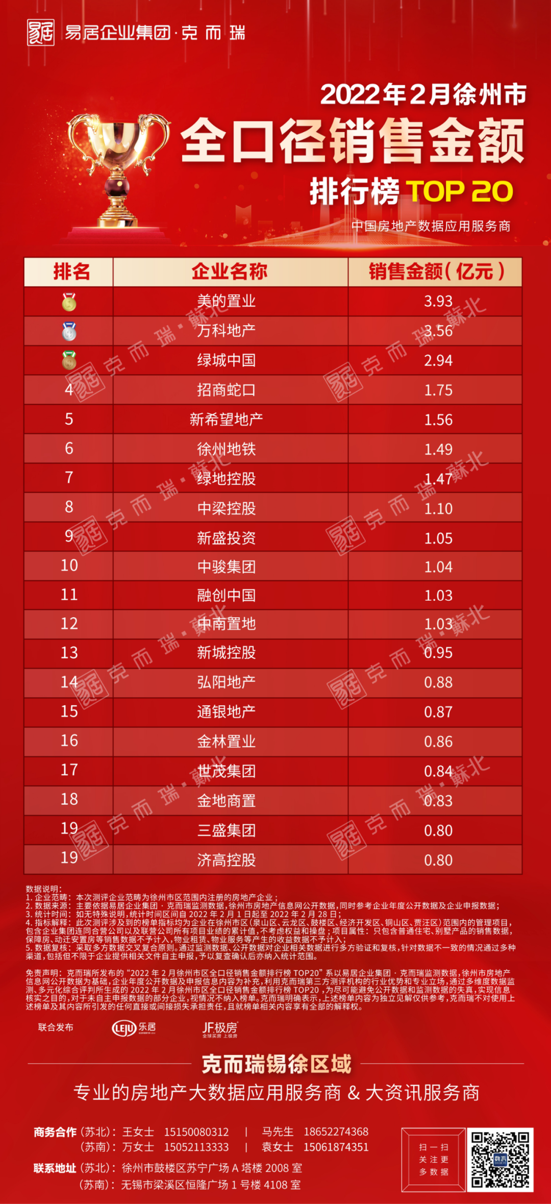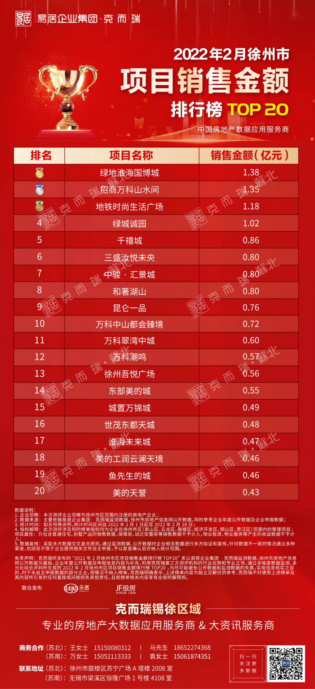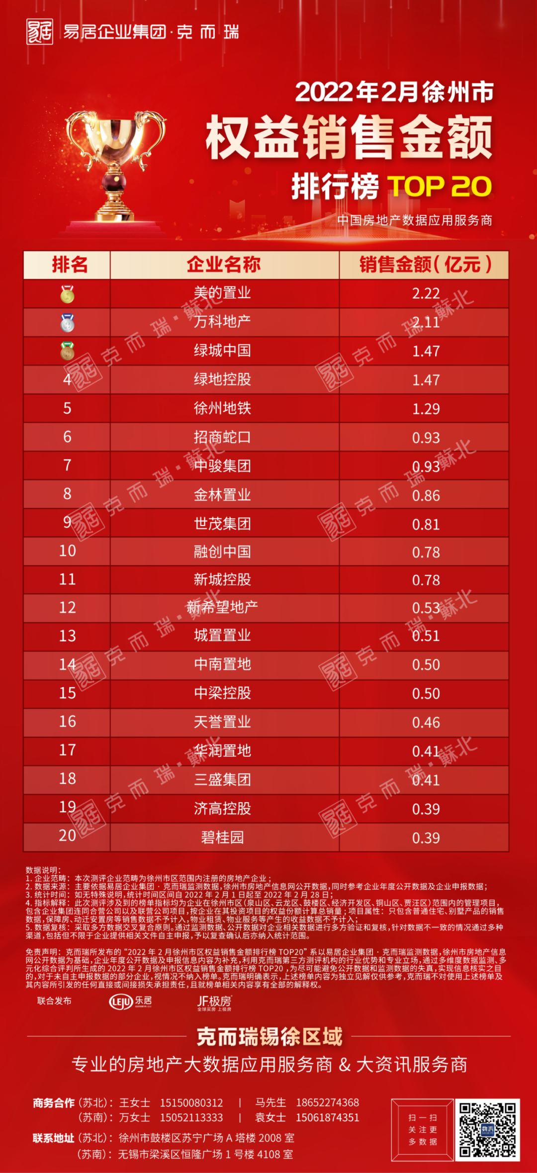 克而瑞徐州2022年2月房企销售榜发布
