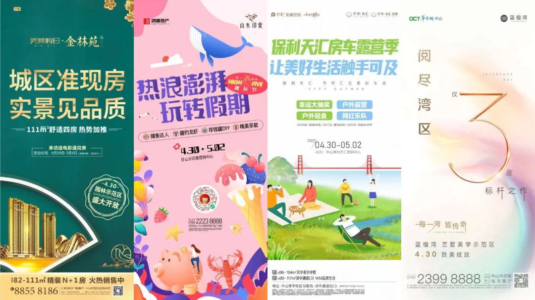 如:古镇保利和光尘樾五一假期开盘,带来古镇豪宅标杆;美林假日·金林苑盛大开放示范区,趁势加推1栋03单元,建面约111㎡四房单位;