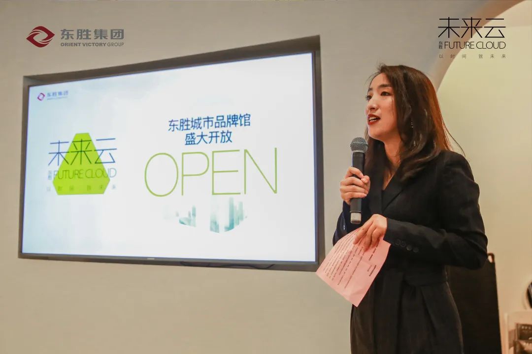 项目营销经理郭贝贝为来宾详细介绍了东胜·未来云的整体情况。项目整体占地约四百余亩,总建筑面积近百万平米,以超前的规划设计理念、园林景观设计标准、产品类型及居住标准打造“一生之城4.0”的标杆产品。