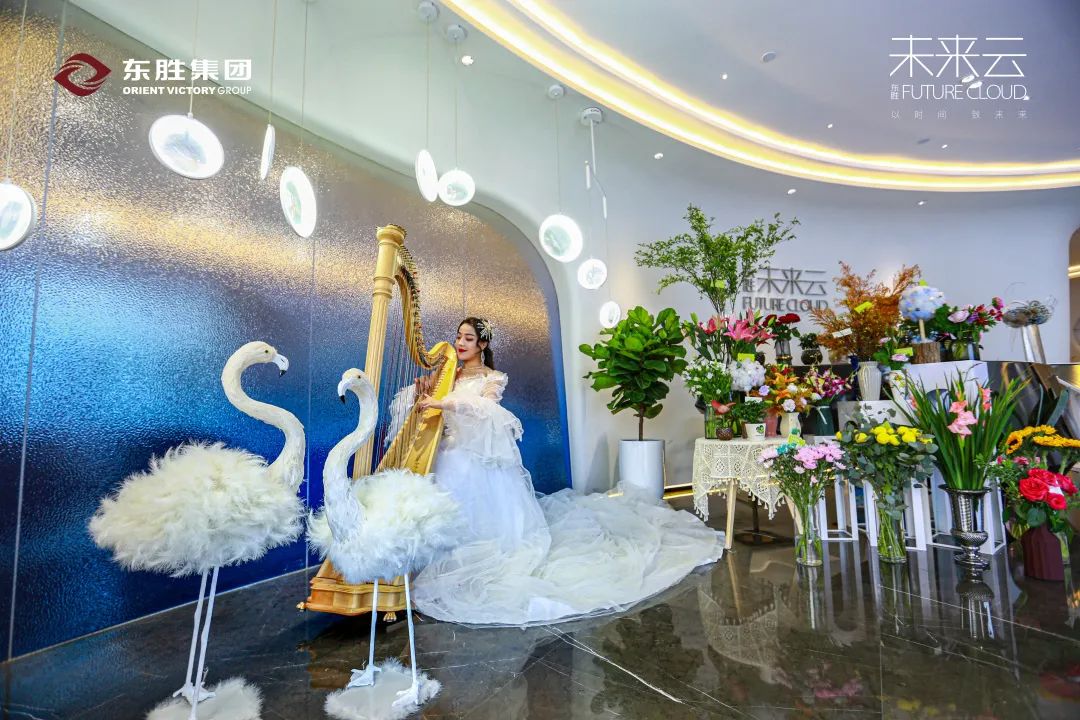仪式还未开始,现场已经人潮涌动,可见大家对东胜集团的美好期待。外场竖琴表演,为来宾奉献了一次别开生面的音乐体验。