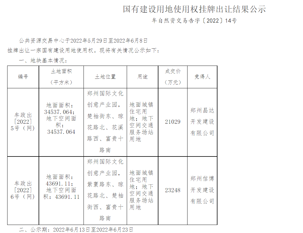 牟政出[2022]5号(网)地块竞得人是郑州昌达开发建设有限公司,成交价21029万元。