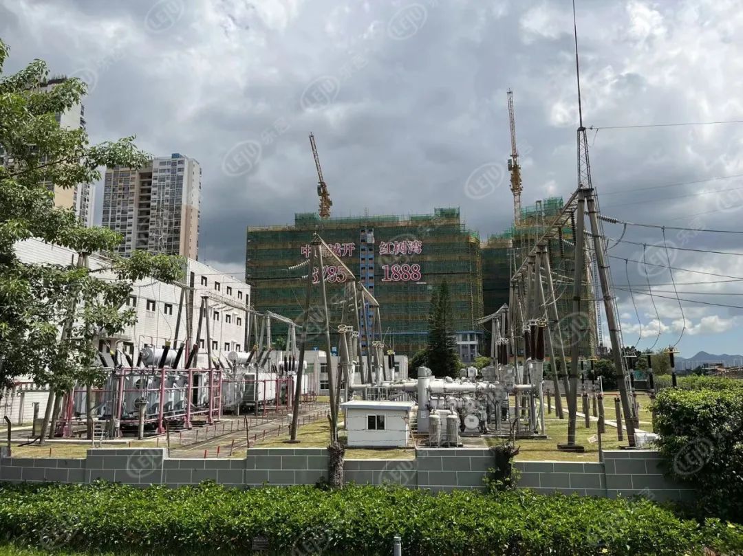中信城开;红树湾东侧紧邻红树福苑小区,西侧为景观面,朝向红树林公园和深圳湾,南侧是卡西欧电子(深圳)有限公司的5层建筑,北侧是一处变电所,连接的线路以及河对岸的高压线塔,稍影响景观。