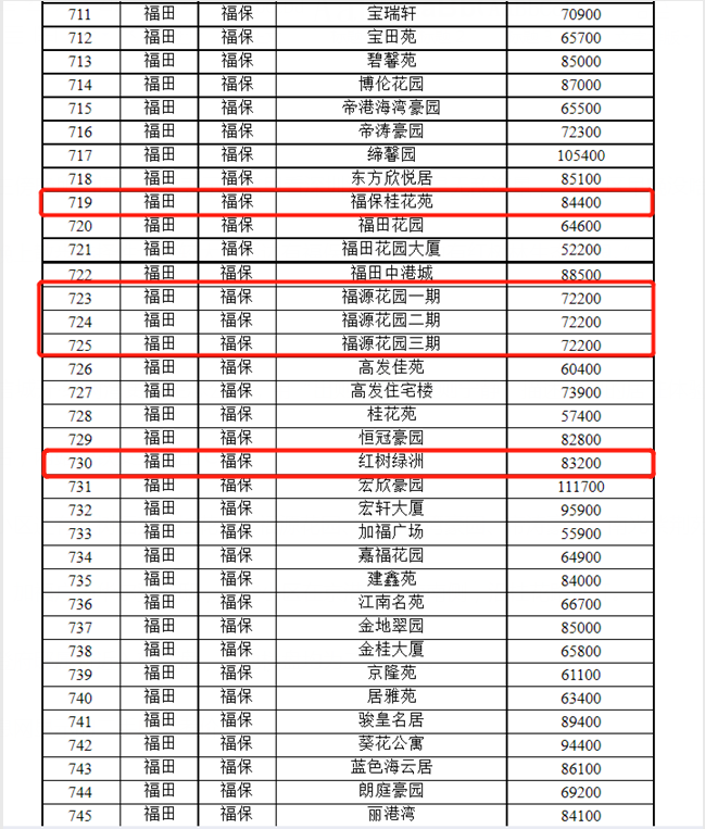 除加福广场华尔登府邸(备案均价9.4万/平)属新近入市楼盘,其他楼盘均为二手小区。据深圳房地产信息网的二手房参考价(2021)显示,周边二房均价从约6.5万/平到8.5万/平不等。