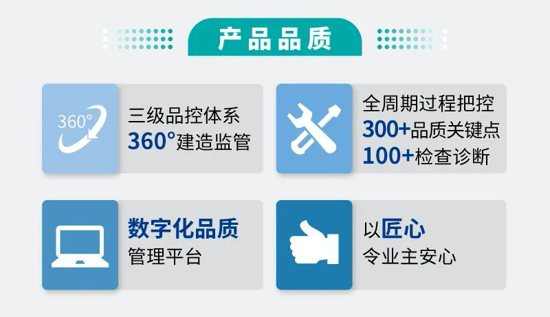 龙湖推出的“智善交付体系”中,在营造阶段坚持“集团—地区—项目”三级品控体系,覆盖项目全周期的300余个品质关键点打磨和100+不同层级的检查诊断,实现项目从开工到交付的360°建造监管,为业主呈现高品质精工人居。