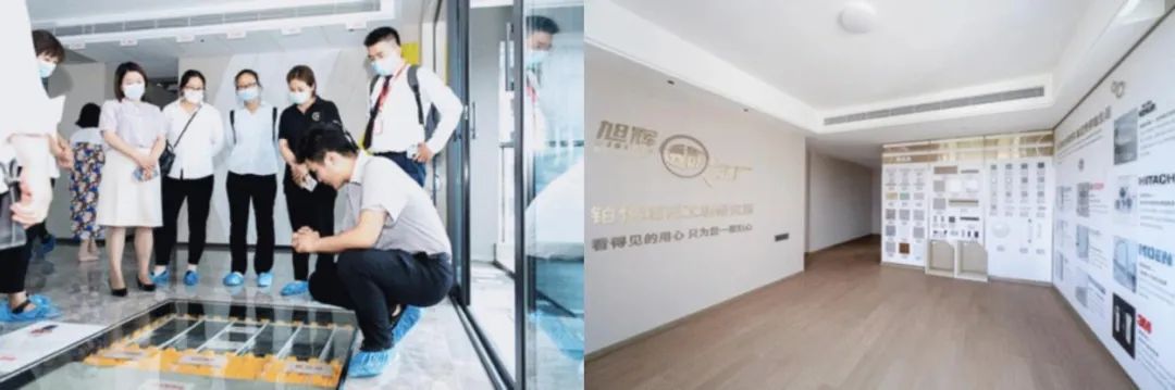 为了让客户更好地了解到“好房子是怎么样炼成”,旭辉在打造“透明工厂”的基础上,直击购买精装房的质量痛点,打造“精装工坊”,在精装交付样板间里进行深入“剖解”,让客户亲身感受房屋的墙面、吊顶、天花板等局部的拆分、解构,房屋品质一目了然。