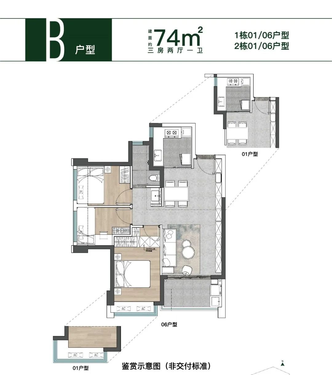 但宝珺园74㎡可做到3房,户型设计紧凑且实用率约为79%,收纳空间较为充足。项目适合预算不太充足、想上车宝安的刚需购房者。