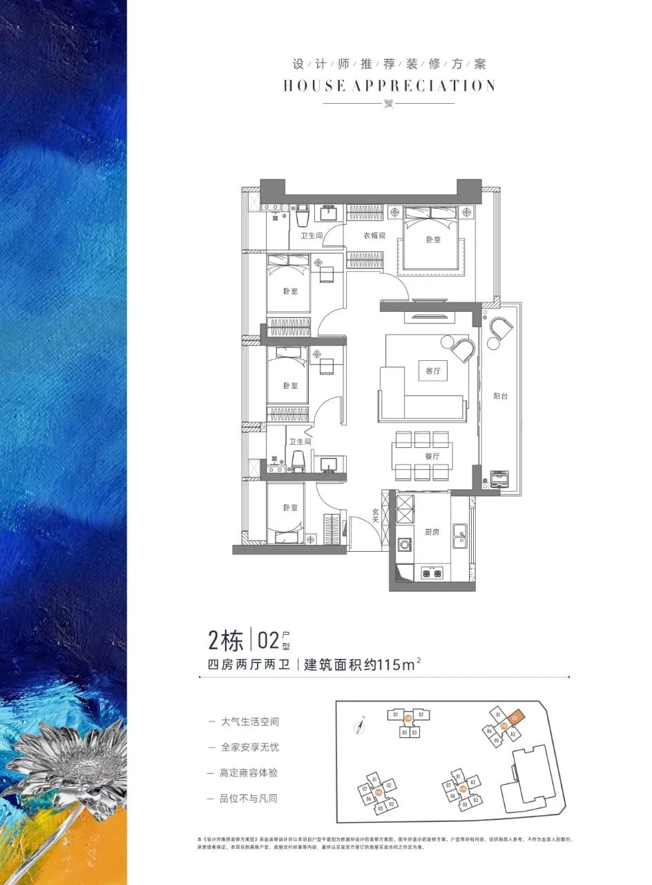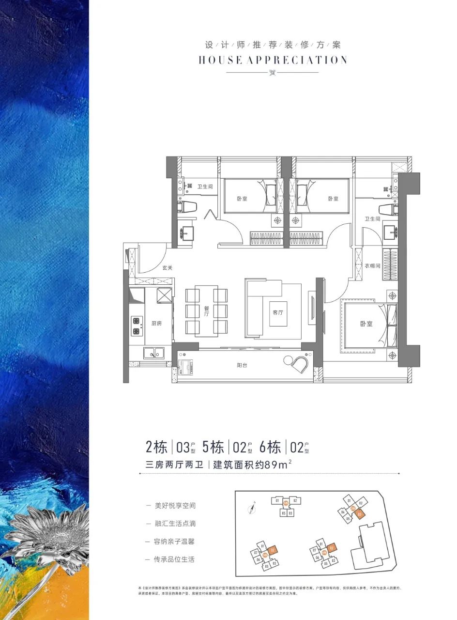 宏发悦云花园共有6栋建筑,包含1栋办公楼、4栋住宅,以及1栋幼儿园。项目共有803套可售住宅,户型建面约79-128㎡3-4房住宅,装修交付,吹风价5.5万/㎡(具体价格以开发商公示为准)。