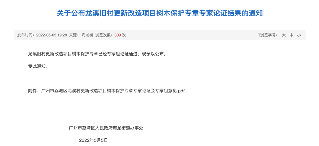 同期,荔湾区海北村、龙溪村更新改造项目树木保护专章也经专家论证通过。