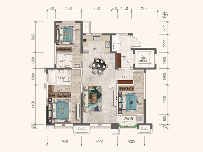 建面约125㎡的三室两厅两卫产品,一梯两户,电梯双开,赠送约6㎡私家电梯厅。推门即见鞋柜、衣柜,可随心进行空间扩展。约7米南向贯穿式阳台连接客厅和南卧,约10.8米南向面宽,三面朝阳,采光面更大更通透,在这里业主可以赏花喝茶、欣赏园区景观,眺望南湖的葱绿。该户型餐客厨一体化设计,动线更合理,私密空间U型阳光厨房,随时随地享受家人欢聚时光。南向主卧套房设计,拥有约3.8米超大开间,阳光肆意,打造独立衣帽间,照顾私密起居,尊享主人的舒适生活。
