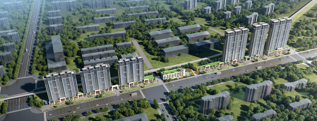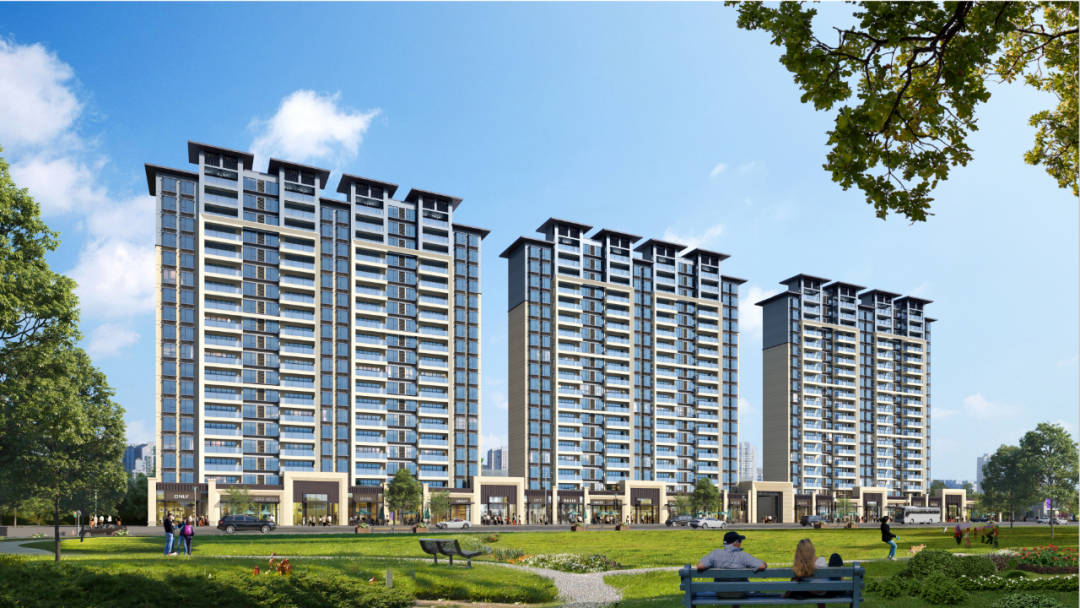 根据详规,本项目规划高层区住宅采用新中式建筑风格,整体线条简洁略偏厚重,顶部高低错落紧凑,创造出“典雅、时尚”的风格。