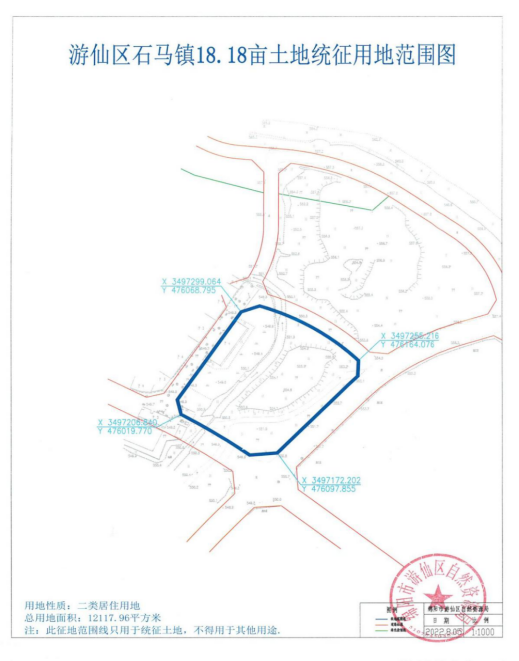 拟征收土地位于绵阳市游仙区石马镇狮院村,拟征收面积约1.2118公顷,具体范围详见附件《拟征收土地范围图》。实际征地范围以勘测定界成果为准。