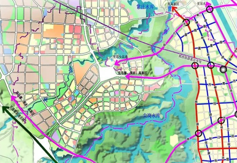 项目规划:规划结构为“一心、两廊、三轴、四片”。以占地2000亩小双桥遗址公园为生态核心,索须河和沿连霍调整防护绿化带为两条生态廊道。以长椿路、垂柳路北延线、北四环连接线为区域内部发展三条轴线,发展东片区、西片区、双桥污水厂片区、后庄王遗址四个片区。该项目建设中除郭庄等行政村的安置房建设外,规划了商品房开发、商业写字楼、园区、商场等多产业领域建设,并设有医疗卫生机构、小学、初中、高中等教育机构以及部分行政事业单位,生活及产业充分融合,打造高质量居住环境,实现公共服务配套综合化、产业融合多元化。