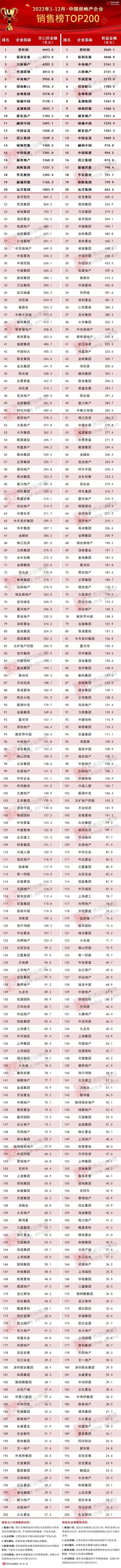2022年中国房地产企业销售TOP200排行榜