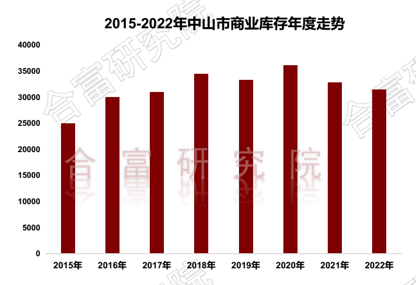 根据合富研究院监测,2022年中山市商业库存31428套, 451万㎡,套数同比下降4%,历年来看,2016年至今库存一直维持在3万套左右。