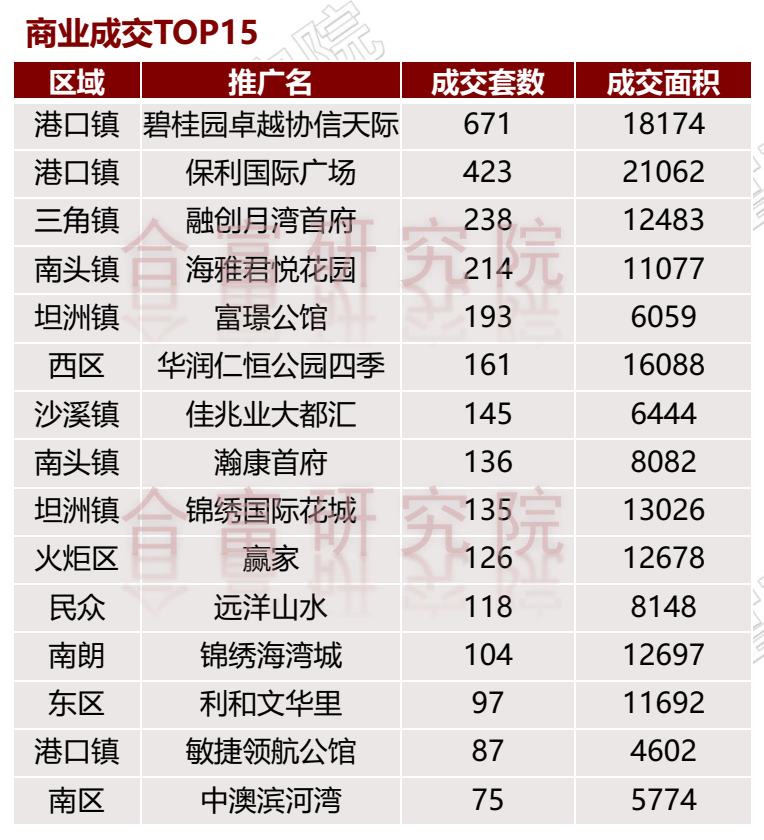 泛城区成交霸榜,主要是碧桂园卓越协信天际及保利国际广场的成交。
