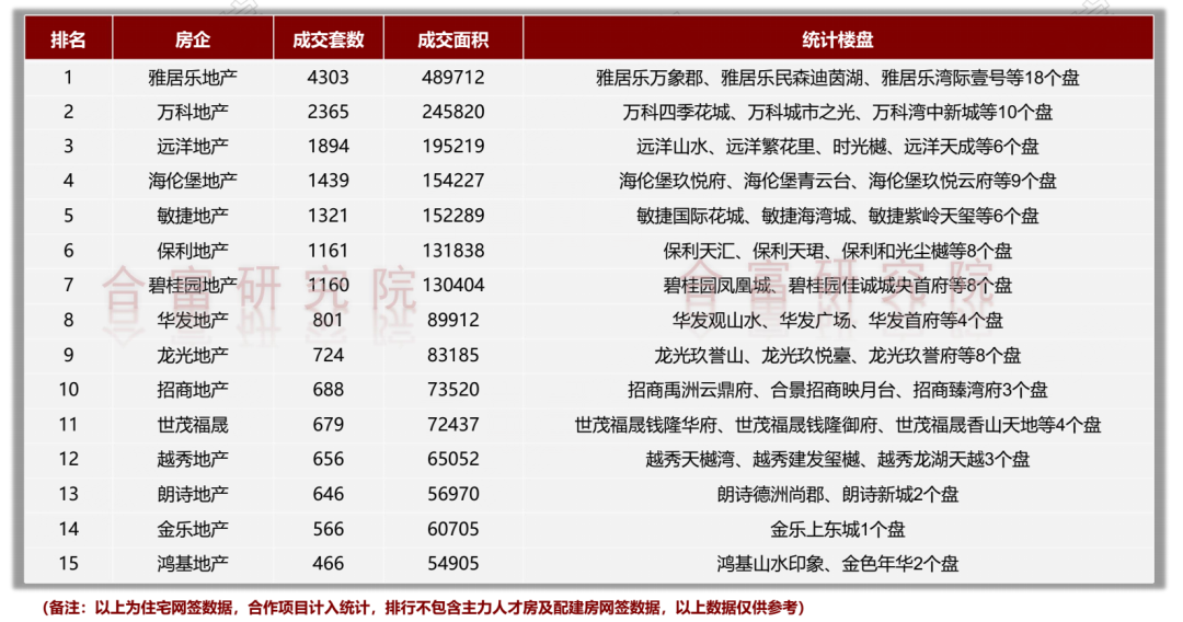除了雅居乐,2022年成交套数进入前十榜单的有,万科、远洋、海伦堡、敏捷、保利、碧桂园、华发、龙光以及招商。