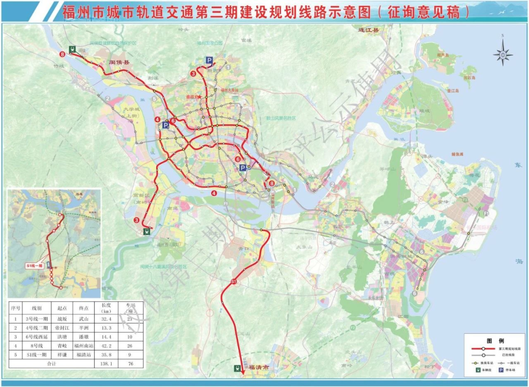 事实上,去年12月9日,福州地铁官网发布福州市城市轨道交通第三期建设规划(2024~2029年)环境影响评价公众意见征询及社会稳定风险评估公众参与公示。公示显示,本期建设规划共5个项目,线路总规模约138.1km。