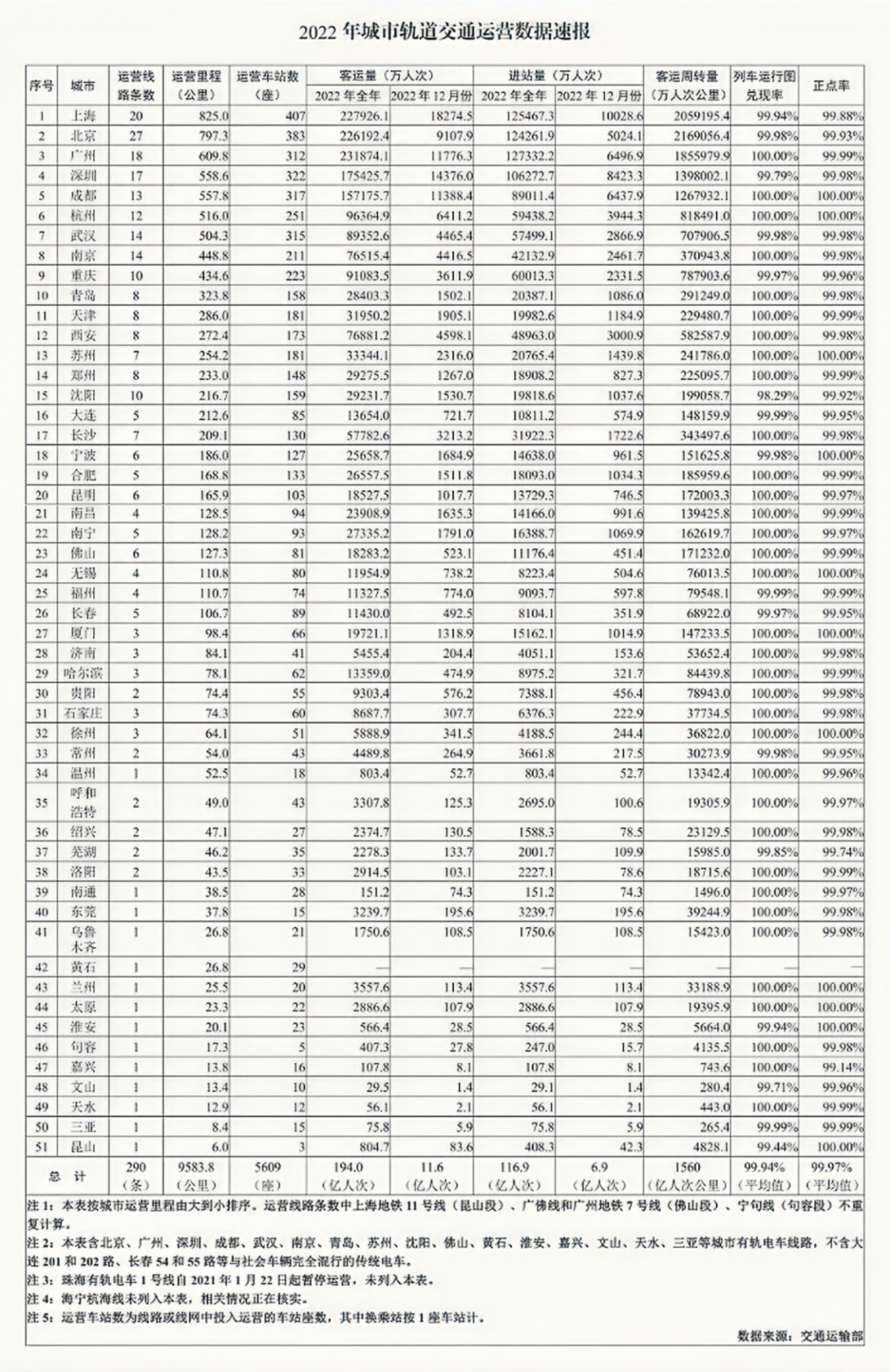 近年来,我国城市轨道交通发展迅速。数据显示,截至2022年12月,全国共有53个城市开通运营城市轨道交通线路290条,运营里程9584公里;其中,福州运营线路4条,运营里程110.7公里。