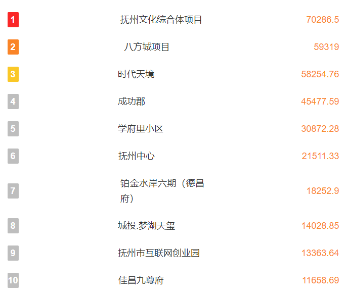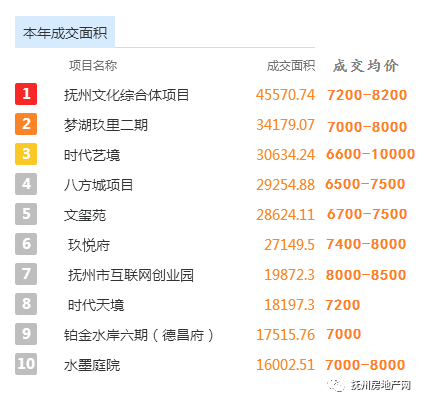 据抚州市住房与房地产信息网数据显示,2022年中心城区的项目成交情况,第一名为抚州文化综合体项目,成交面积约4.557万㎡,合计约420套,远超第二名达1.1万㎡,合约120多套。