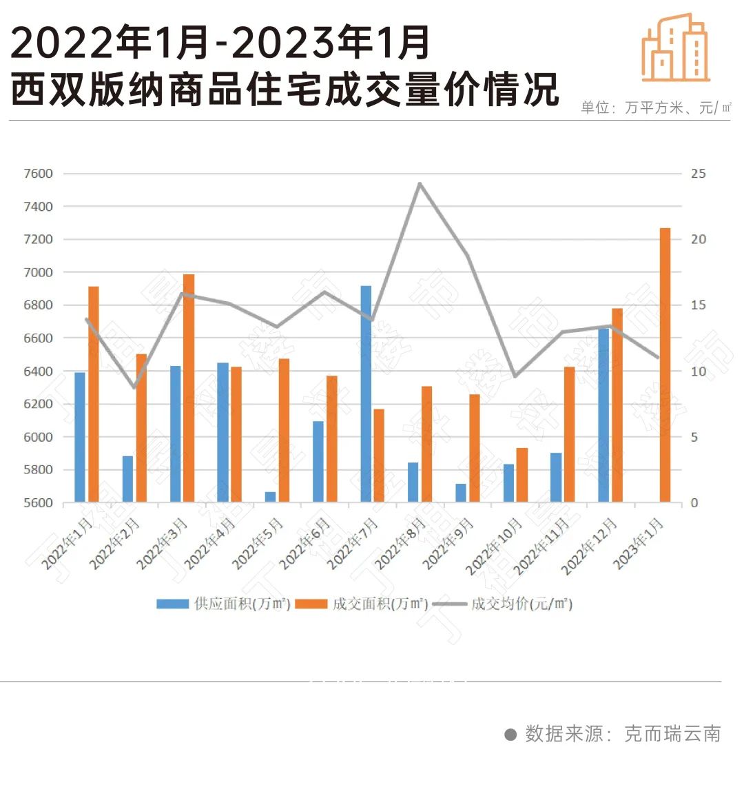 过去的1月,东三省的购房人群支撑起了西双版纳的楼市,仅春节期间东三省购房占比就达到了4 成。城市旅游热度支撑地产复苏。 先来看成交数据,1月西双版纳新建商品住宅共成交20.87万平方米,同比上涨27%,环比上涨41.5%。其中,雨林时光备案成交484套,其他项目备案均在80套以上。 这组数据有两个典型特征。首先,1月西双版纳新建商品住宅成交总量接近省会城市昆明,领跑云南重点地市州。其中,成交总量是大理的6倍。 单从西双版纳这座城市来看,1月成交规模创下近13个月峰值。实际上,自去年10月以来,西双版纳商品住宅成交规模连续4个月环比上涨,至1月受旅游复苏影响,市场迅速回温。 实际上,观察近5年西双版纳成交情况来看,成交总量维持在120万平方米以上,在疫情以来,西双版纳“以价换量”成交均价和规模均低位徘徊,尤其是2022年成交均价下跌至“6”字头,项目价格较2020年普遍下降3成左右,“抄底”氛围之下进一步刺激成交。 根据克而瑞云南机构提供的数据,1月70平米以下面积段、总价40万以下的产品成为市场主力。聚焦春节期间,西双版纳购房门槛套均总价46万元,较2022年上浮5万,但相比2021年峰值降低了23万, 这也意味着,经济与行业下行压力下客户偏理性,即便是在房价偏低的旅游城市,投资行为也更加保守。 在这种情况下,市场有一个重要的声音,“西双版纳式”回暖是否可持续? 这是一个房地产市场与旅游热度正相关的城市,从近期监测情况来看,2月旅游人次明显较1月减少,市场热度出现下滑迹象,3-4月或因为泼水节的到来维持一定市场热度,但5月之后购房热度能否继续上扬仍然是个未知数。