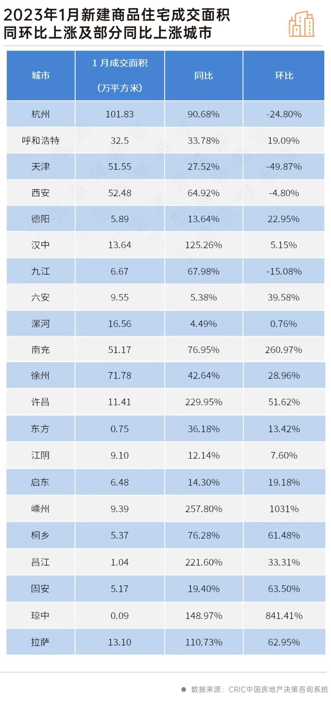 旅游城市西双版纳热度回升,放在全国并不具典型意义,但一些城市近期市场表现,也让我们看到了复苏的迹象。 从中观成交层面来看,2023年1月,有17个城市商品住宅成交面积同环比齐增,其中也不乏琼中、东方和拉萨等一些旅游城市,但多数以三四线城市为主,这部分城市春节返乡释放一轮购房需求,与此同时,疫情全面解绑也会释放出部分补偿性购房需求。此外杭州、西安、天津三个城市同比均为正增长。 从周度数据来看,第七周(2.06-2.12)重点城市新房成交总量继续回升。根据CRIC数据显示,第七周,重点30个城市成交面积环比上涨的城市就有23个,只有5个城市环比下跌。重点城市开盘去化率达到了68%,并创下去年第18周以来新高。 微观市场层面,也可以看出市场企稳回升的苗头。 比如天津、南京、苏州、福州等地,来访量和认购量稳步回升。典型如天津,第五周全市热销项目共计接待客户25303组,平均单盘接待92组客户,热销项目共计认购2078套,超过2022年所有周度认购数据,甚至高于2021年下半年市场行情,全市认购转化率为8.2%。 项目层面收回折扣也很能说明问题。比如南京部分项目宣布收回优惠;徐州泉山区某项目2月1日起在售房源价格全线上涨1%,更有项目宣布上调2%-5%。 值得注意的是,从房价涨跌情况来看,根据国家统计局最新数据,1月共有21个城市新房价格连续3个月同环比下降,数量较12月减少了14个,其中,有15城房价结束“3连跌”,市场出现了不同程度的“量价回暖”信号。 部分城市下行压力得以缓解,并不意味着市场迎来真正复苏。 这个市场,仍然是脆弱的。 实际上,当前市场热度大致是两方面使然。一部分是返乡置业释放后的成交上行,从历史成交数据来看,每年春节过后市场都会出现类似的短期成交放量情况;另一方面房贷利率下限动态调整政策,目前已有33个城市房贷利率下调至4%以下,核心二三线城市一部分被积压的需求被刺激释放。 复苏只是局部而非全面,且是持续性存疑。 一旦政策宽松环境有所收紧,楼市势必会面临新的压力,当前在售项目案场来访认购回升和网签备案量价齐升的情况也将随之降温。 市场底部修复需要一个缓慢的过程,且修复过程较为脆弱。短期内的市场仍需要温和的政策支撑,市场信心仍有待政策呵护。 房地产市场重回良性循环仍需要较长一段时间。