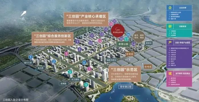 按照晋安区“四心、三区、一廊、一带、多节点”的空间布局结构,三创园目前累计整合产业用地1288亩,盘活自有厂房16万平方米,建成高标准厂房12.2万平方米。园区现有规模以上工业企业82家,国家级高新技术企业81家,科技小巨人领军企业15家,瞪羚企业1家。晋安湖片区规划建设的“三创园”项目位于晋安湖公园东侧,是福州中心城区唯一的“三创园”,以“三创、两新、一都市”为产业功能定位,打造“两新一都”(创新型产业、战略型新兴产业、都市型产业)现代化国际化产业聚集区。