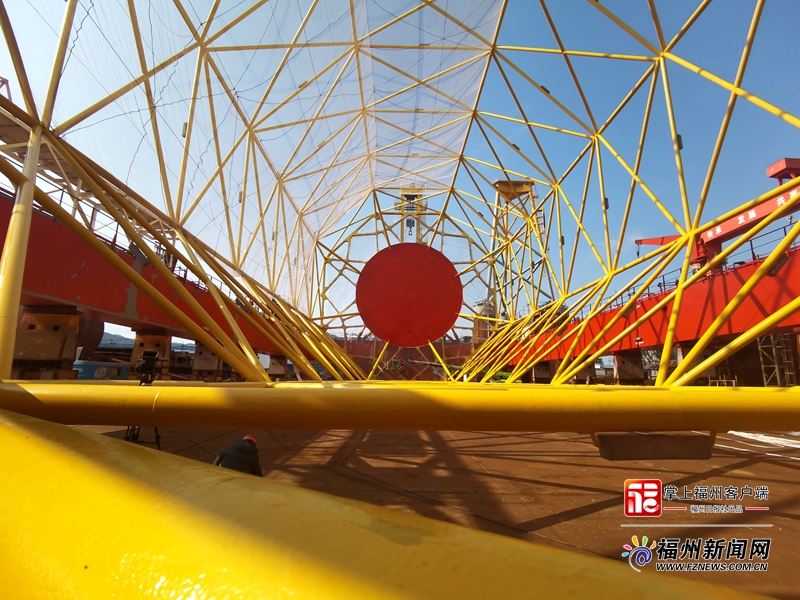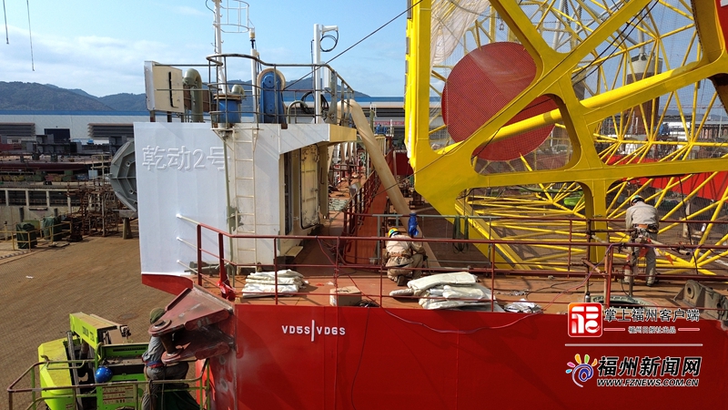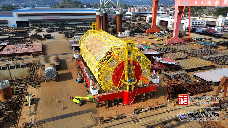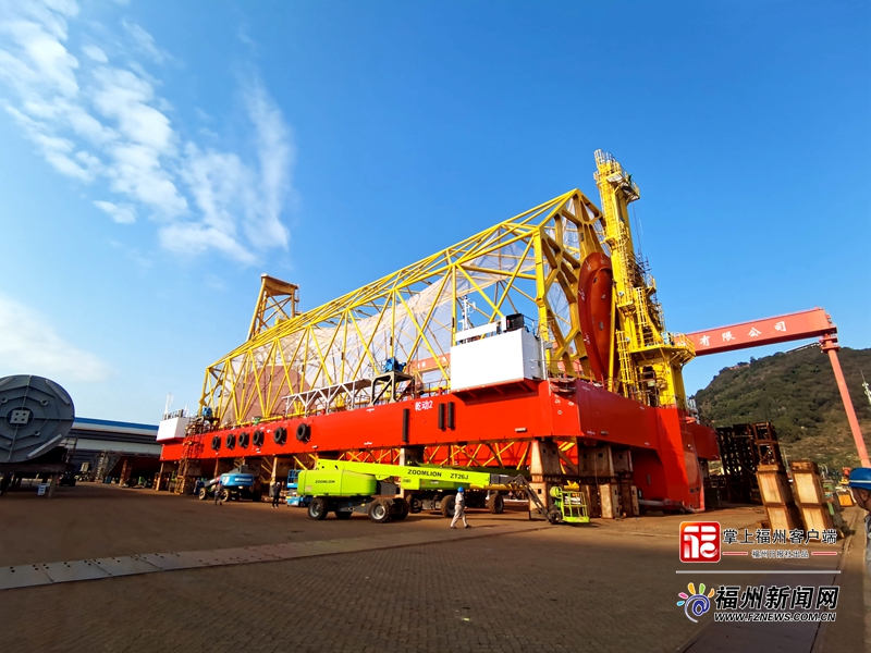 施工工人各司其职、相互协作,龙门吊、焊机、高举车等机械不停运转,设备锤击声与机器轰鸣声相互交织……这是记者在马尾造船厂(连江厂)总组平台看到的热闹景象。眼下,“乾动2号”整体组装已基本完工。