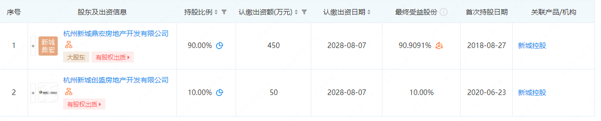 其中,项目的大股东金华亿盛企业管理有限公司,又由杭州新城鼎宏房地产开发有限公司(持股90%)、杭州新城创盛房地产开发有限公司(持股10%)控股,两家公司均为新城旗下子公司。