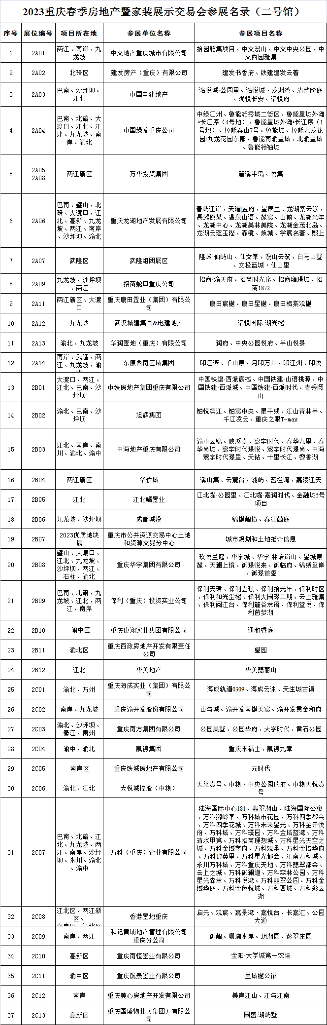 附:2023重庆春季房地产暨家装展示交易会参展企业名录及部分优惠信息