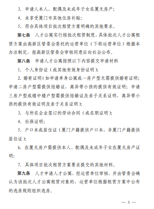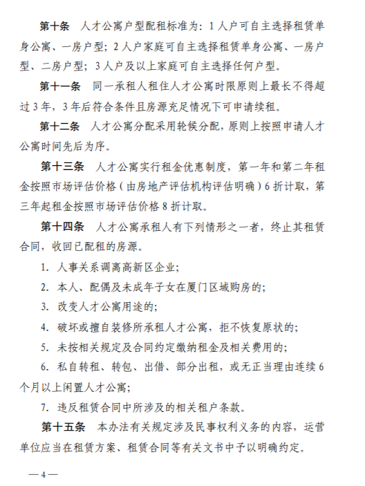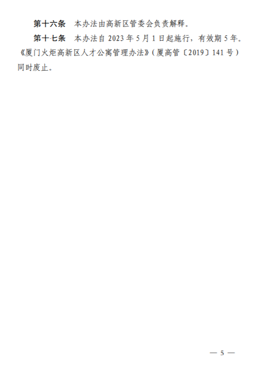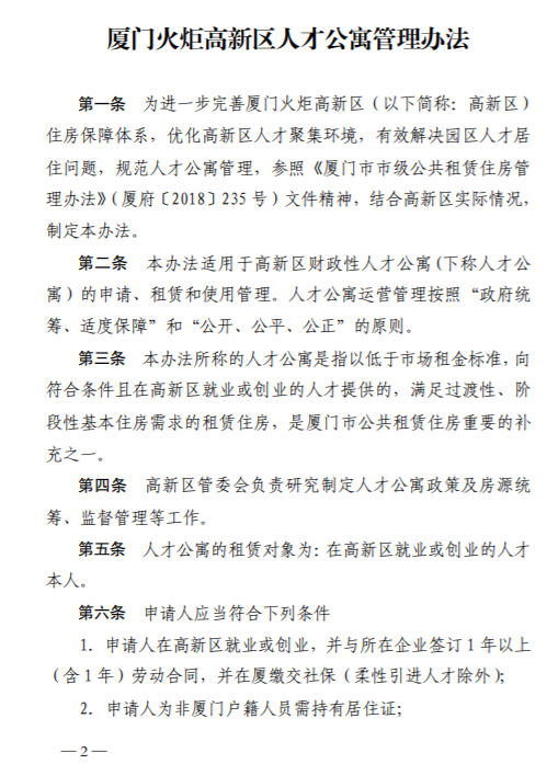 近日,厦门火炬高新区管委会印发关于《厦门火炬高新区人才公寓管理办法》的通知。主要提到: