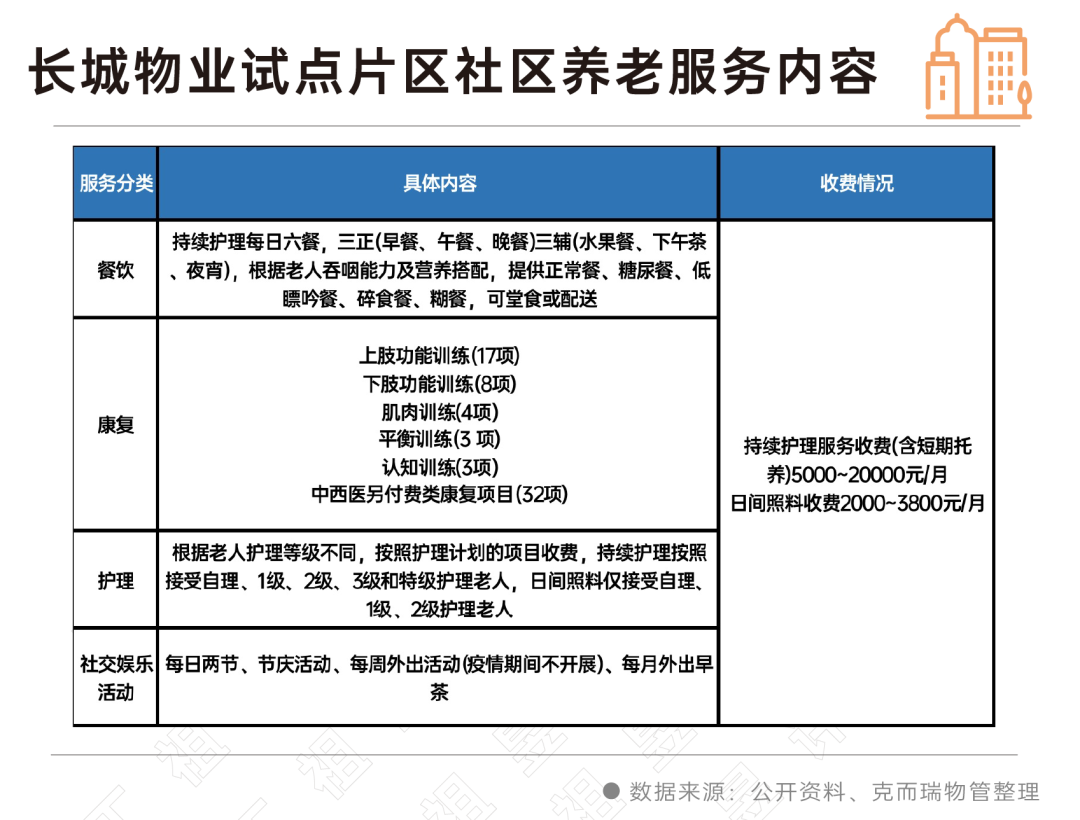 社区养老形态和机构养老类似,但更接近居民,同时其形态又更容易被老人理解和接受,比起接受收费的居家养老项目,老人对社区养老的接受度更高,因此,社区养老服务成为物企精细化打磨的重点。