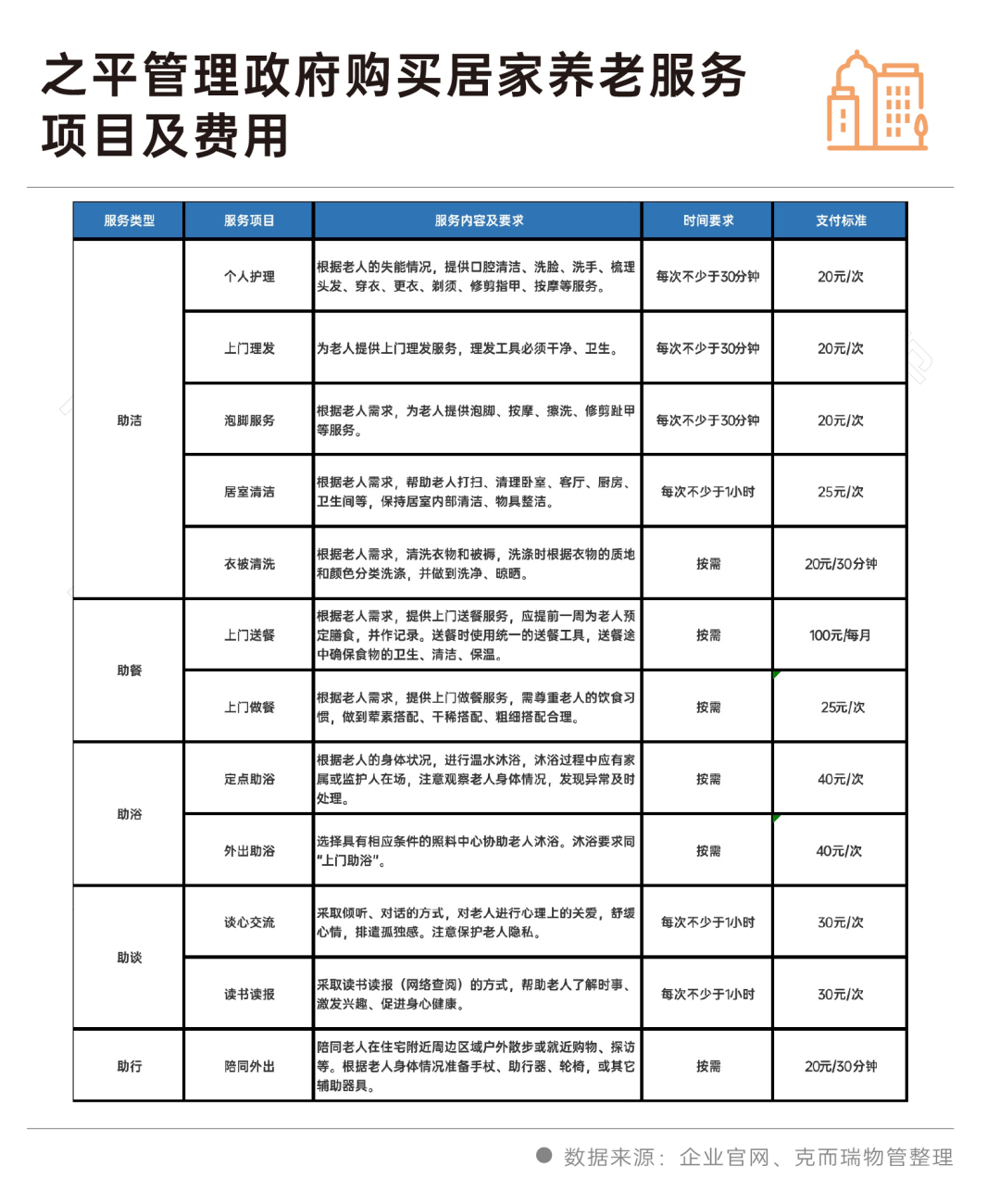 另外,政府购买也是物企开展居家服务的主要方式之一。公开资料显示,之平管理居家养老服务主要就是通过政府购买开展的,企业政府购买居家服务是指对于低收入的高龄、独居、失能等养老困难老人,经过评估,采取政府补贴的形式,为他们提供居家养老服务。