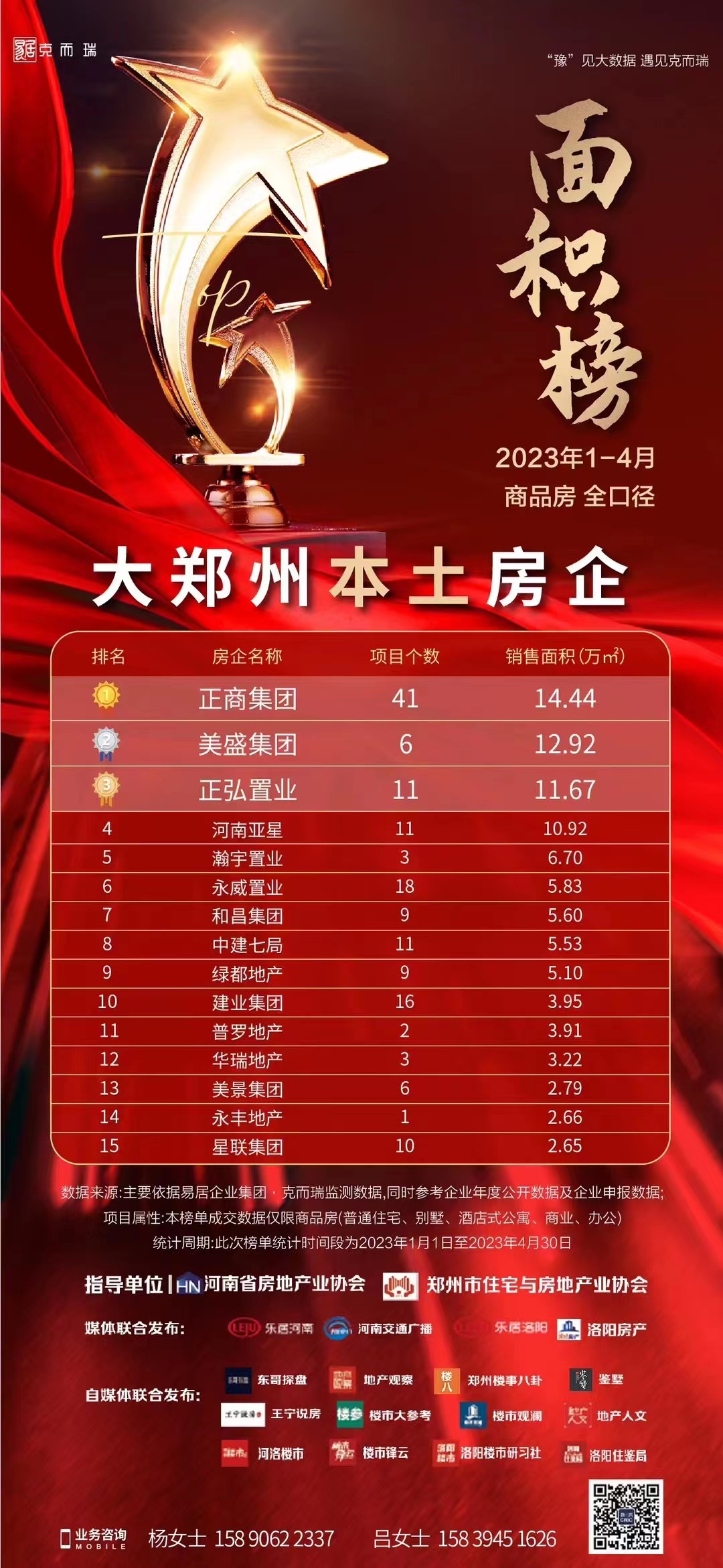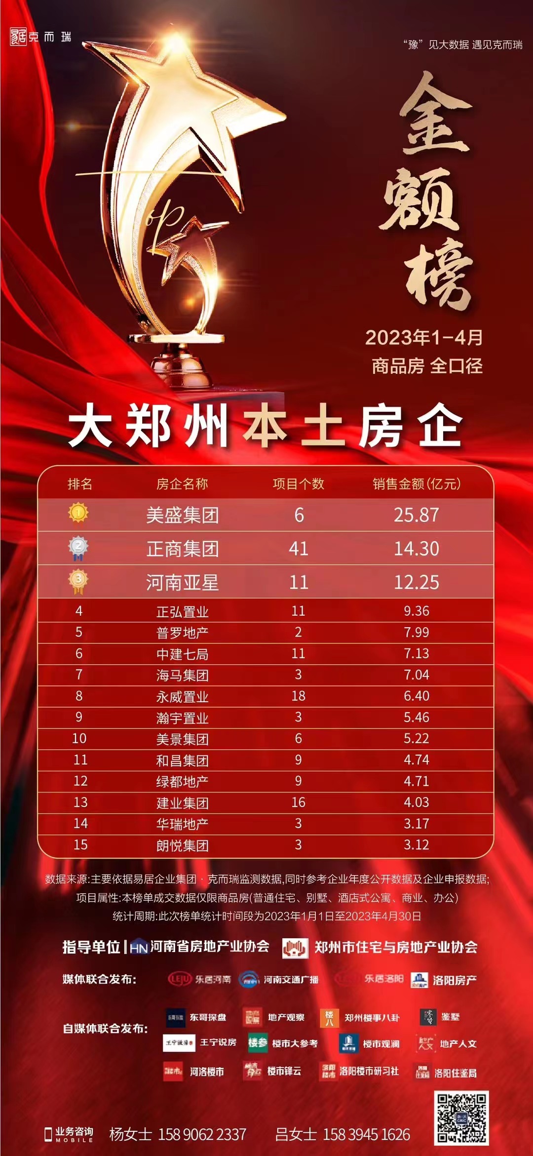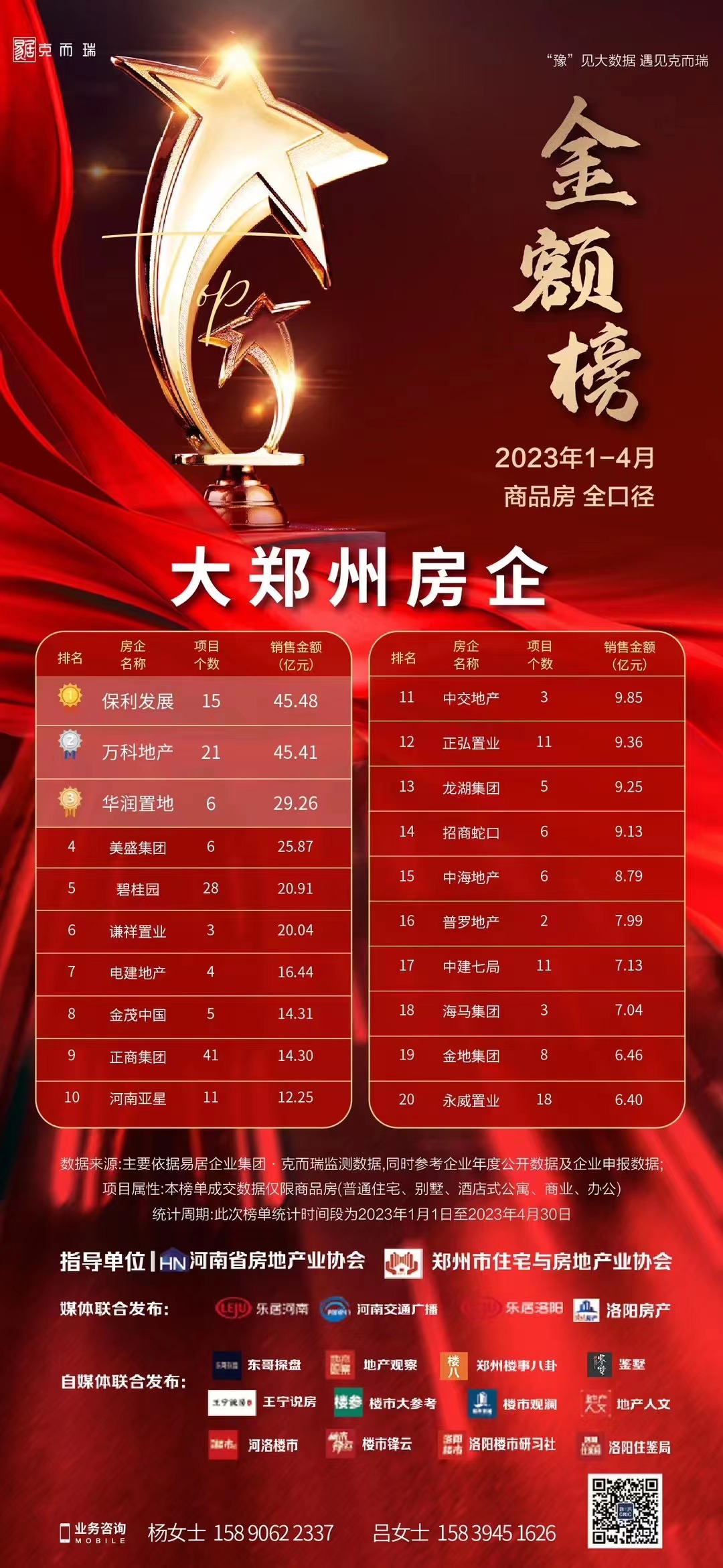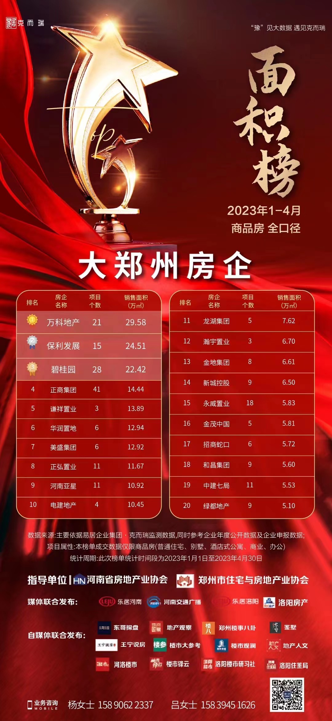 重磅|2023年1-4月大郑州房企商品房全口径销量榜发布